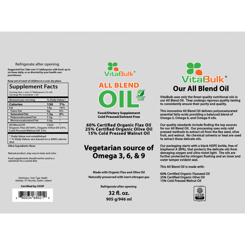 Our All Blend Oil VitalBulk uses only the finest quality nutritional oils in our All Blend Oil. They undergo rigorous quality testing to consistently ensure their purity and quality.