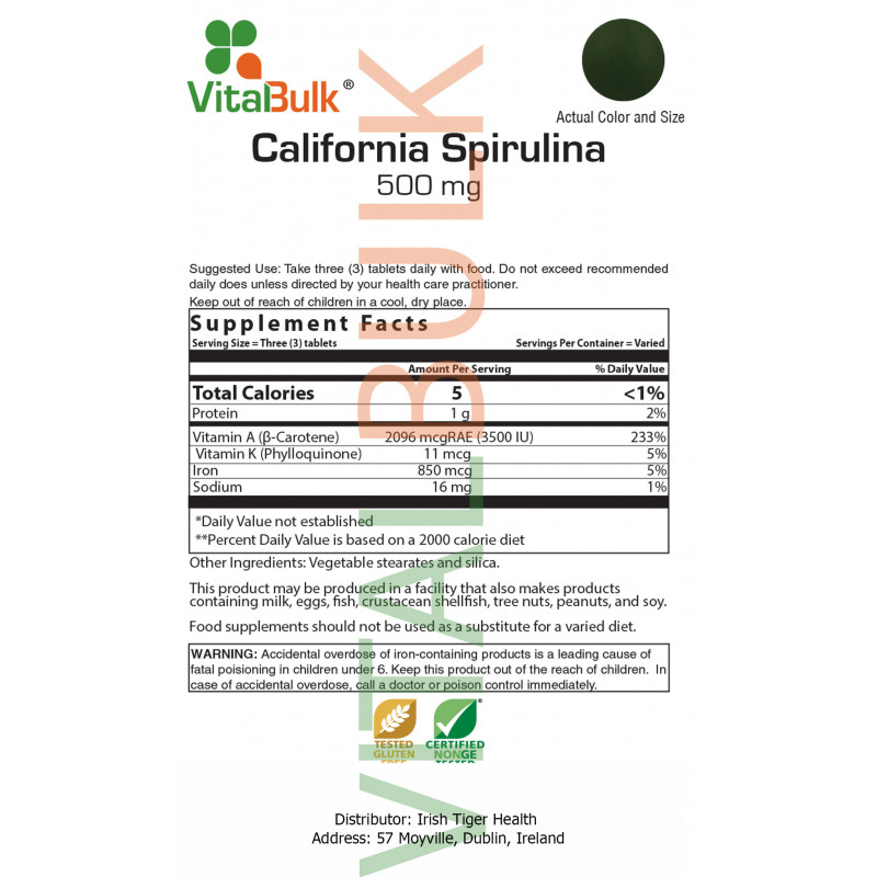 California Spirulina 500 mg Tablet - 180 Count Bag