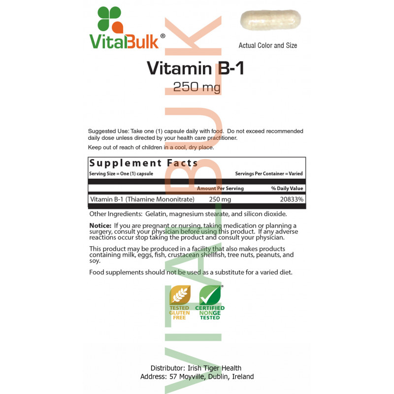 | Vitamin B-1 (Thiamine Mononitrate) | 250 mg | 20833% |